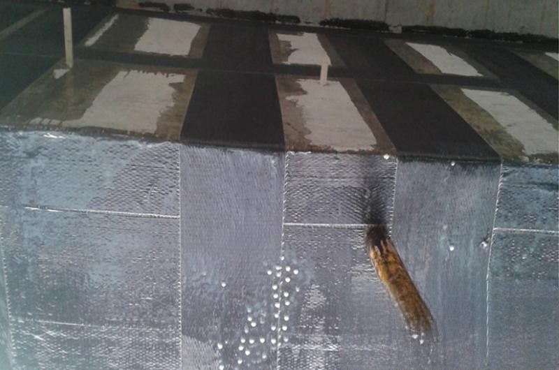 (5)碳纖維布張貼:依照規(guī)劃要求裁剪碳纖維布,制造浸漬膠,選用滾筒或毛刷將浸漬膠均勻涂改于所張貼部位外表,角落和搭接處恰當(dāng)多涂改膠水,用潤滑滾筒或碳纖維刮刀在碳纖維布外表沿同一方向重復(fù)滾壓至膠料滲出碳纖維布外外表,去除氣泡,使碳纖維布充沛滋潤膠料。需求多層張貼時,應(yīng)重復(fù)以上過程,待碳纖維外表指觸感枯燥為宜,方可進(jìn)行下一層碳纖維布的張貼。